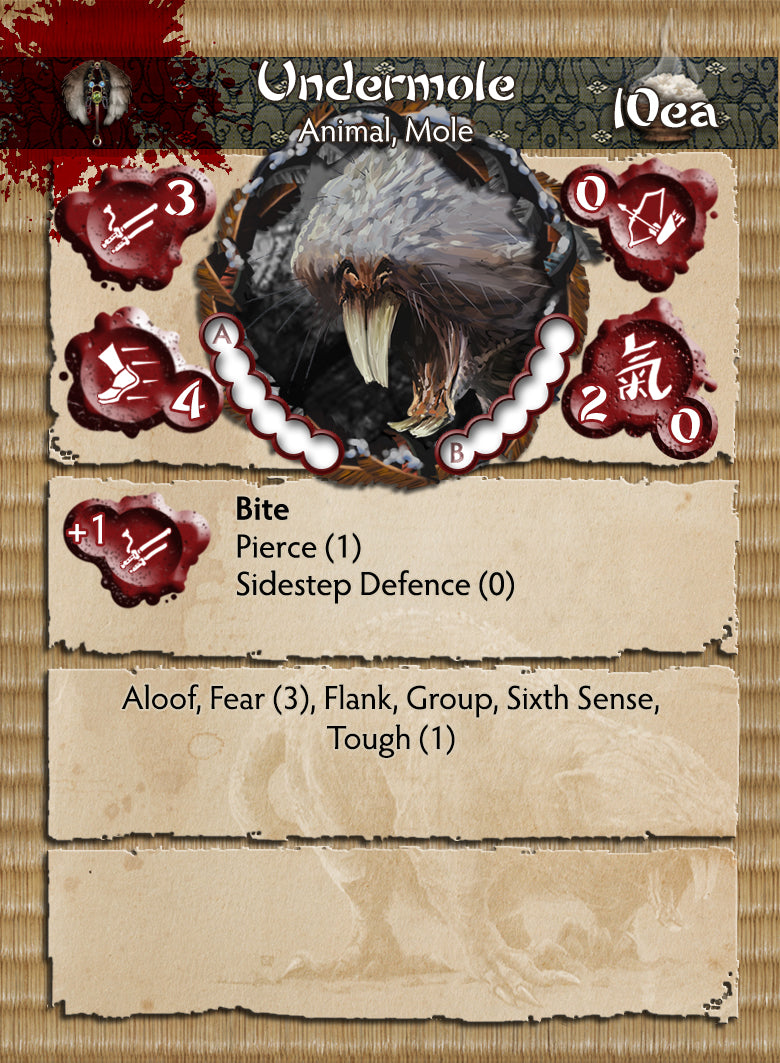 Cheap, sneaky, and destructive—Undermoles burrow into the mid-board, chew through Destructible Terrain, and brawl above their weight with Melee 3 and Tough.