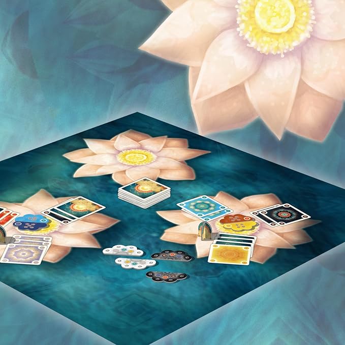 The rules stay simple, but the decisions run deep: players compete to connect and combine same-colored flowers across three mandalas to score the most points. The game also comes with premium components, including a colorful linen playmat, 90 cards, 36 cardboard tiles, and 3 tokens, plus eye-catching artwork by Klemens Franz for an extra polished, immersive feel.