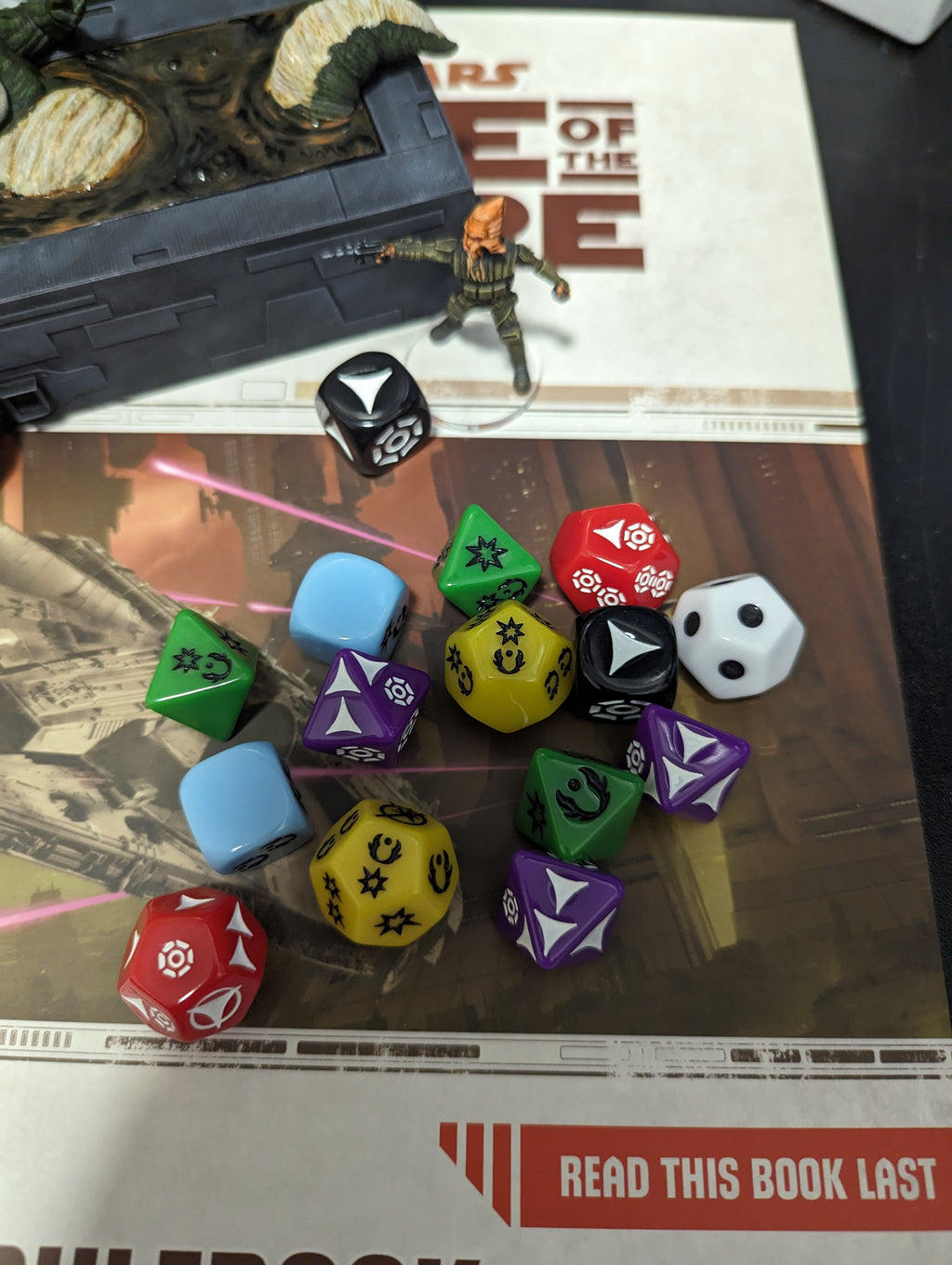 1 force dice (This dice has one face that is blank. it should be the 2 Black force dice)