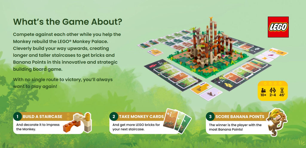 COMPETITIVE BUILDING ADVENTURE: Team up with fellow players to rebuild the magnificent Monkey Palace while competing to earn the most banana points through clever construction strategies.