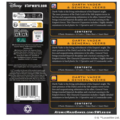 This Character Expansion adds two miniatures—Darth Vader and General Veers—to your Star Wars™: Legion forces, ready to bring terror, tactics, and total control to the battlefield.
