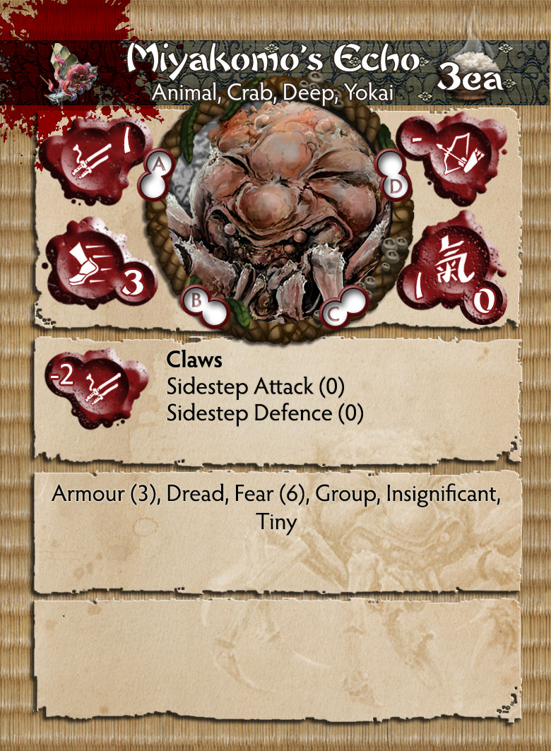 Summoned from the abyss by Miyakomo, these eerie crustacean spirits crash across the deck and shoreline, scuttling where the fight is fiercest. Miyakomo’s Echo adds two more of these Jung horrors to your crew—perfect for scenario pressure, screens, and fueling The Deep’s synergies.